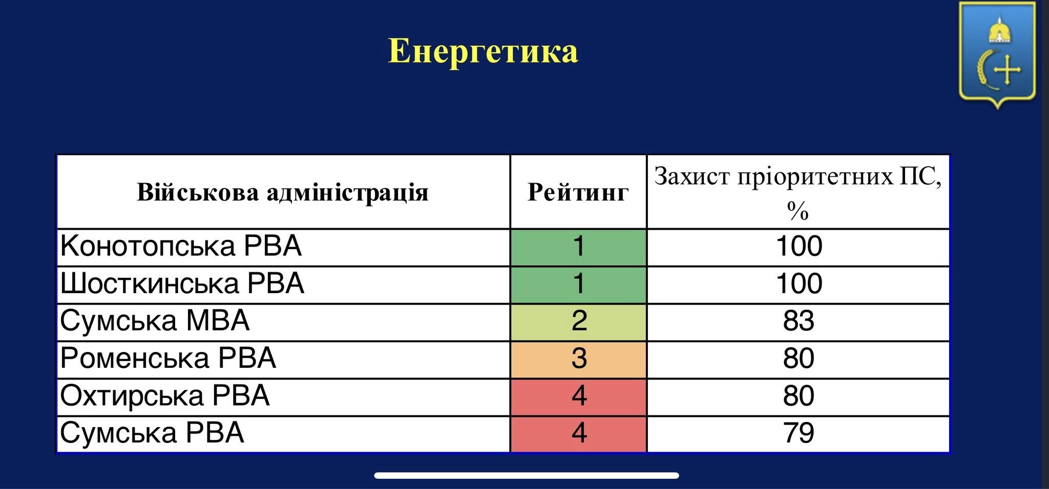 Енергетика – 3 місце, продовжуємо роботи із захисту обʼєктів КІ, наразі залишилось завершити роботи по 1 обʼєкту.