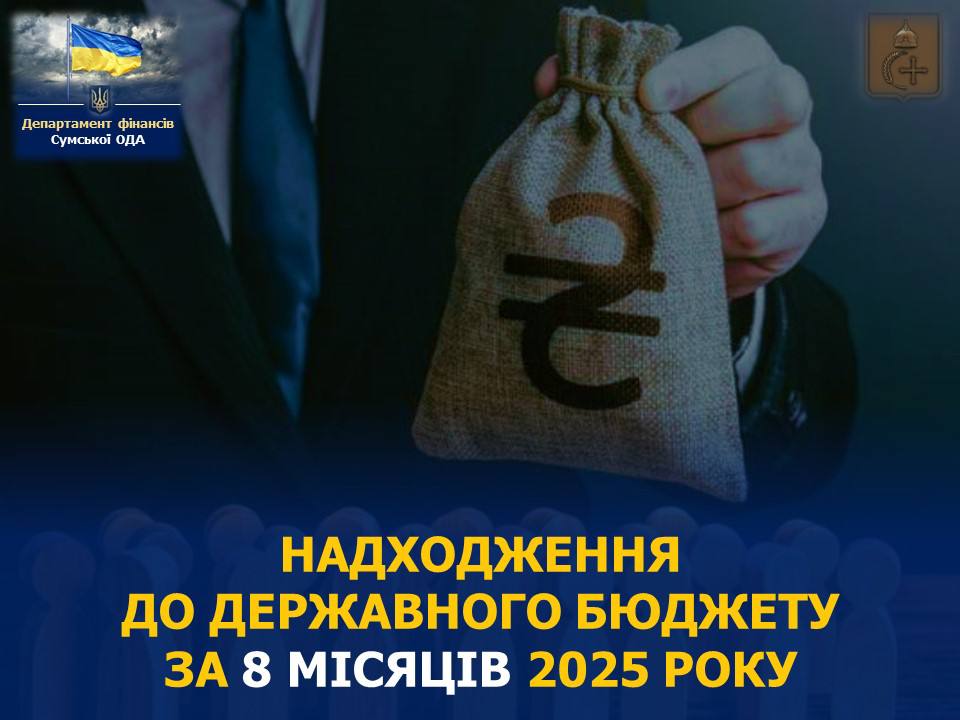 За січень-серпень 2025 року платниками податків Сумської області до загального та спеціального фондів державного бюджету мобілізовано 14 млрд гривень (+3,5 млрд гривень до минулого року), повідомляє Департамент фінансів Сумської обласної державної адміністрації.